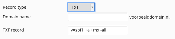 Een ander vaak gebruikte vorm is de SPF – wij noemen het vaak een SPF-record, dan hebben we het nog steeds over een TXT-record.