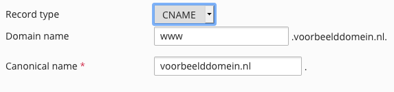 Je kan een 2e A-record aanmaken en bij een toekomstige wijziging in het IP van de webserver, zou je dan 2 A-records moeten wijzigen. Je kan ook een CNAME records aanmaken voor het ‘www’-subdomein naar het hoofddomein, wanneer je dan www.voorbeelddomein.nl in de browser intoetst, zal deze automatisch kijken naar het IP adres dat voor het hoofddomein wordt gebruikt.