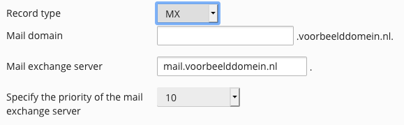 MX-records worden gebruikt om aan te geven door welke server(s) de e-mails verzonden naar dit domein, verwerkt moeten worden.